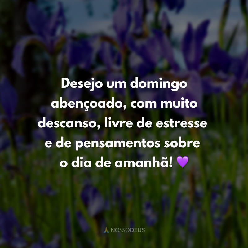 Desejo um domingo abençoado, com muito descanso, livre de estresse e de pensamentos sobre o dia de amanhã! 💜