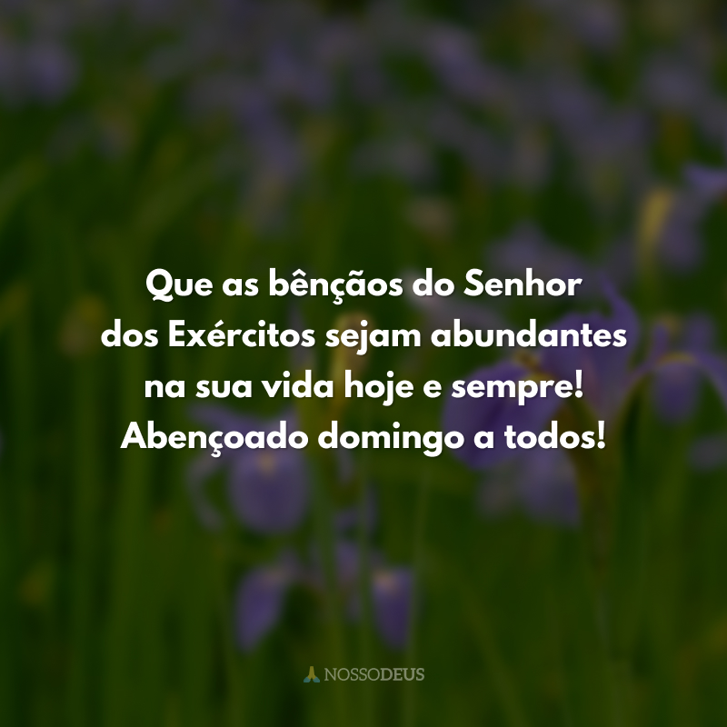 Que as bênçãos do Senhor dos Exércitos sejam abundantes na sua vida hoje e sempre! Abençoado domingo a todos!