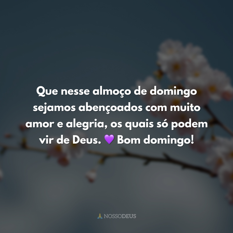Que nesse almoço de domingo sejamos abençoados com muito amor e alegria, os quais só podem vir de Deus. 💜 Bom domingo!