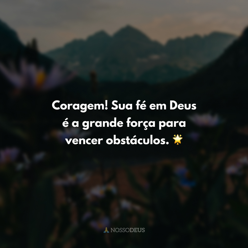 Coragem! Sua fé em Deus é a grande força para vencer obstáculos. 🌟