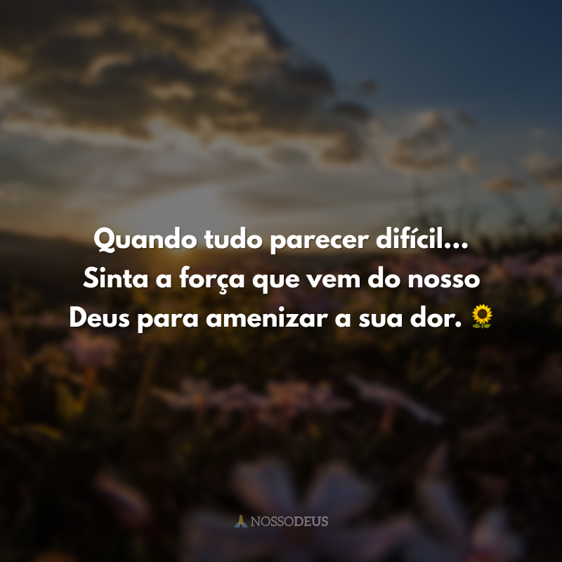 Quando tudo parecer difícil… Sinta a força que vem do nosso Deus para amenizar a sua dor. 🌻