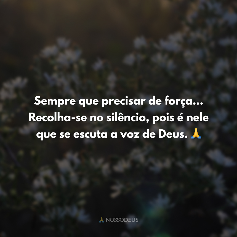 Sempre que precisar de força… Recolha-se no silêncio, pois é nele que se escuta a voz de Deus. 🙏