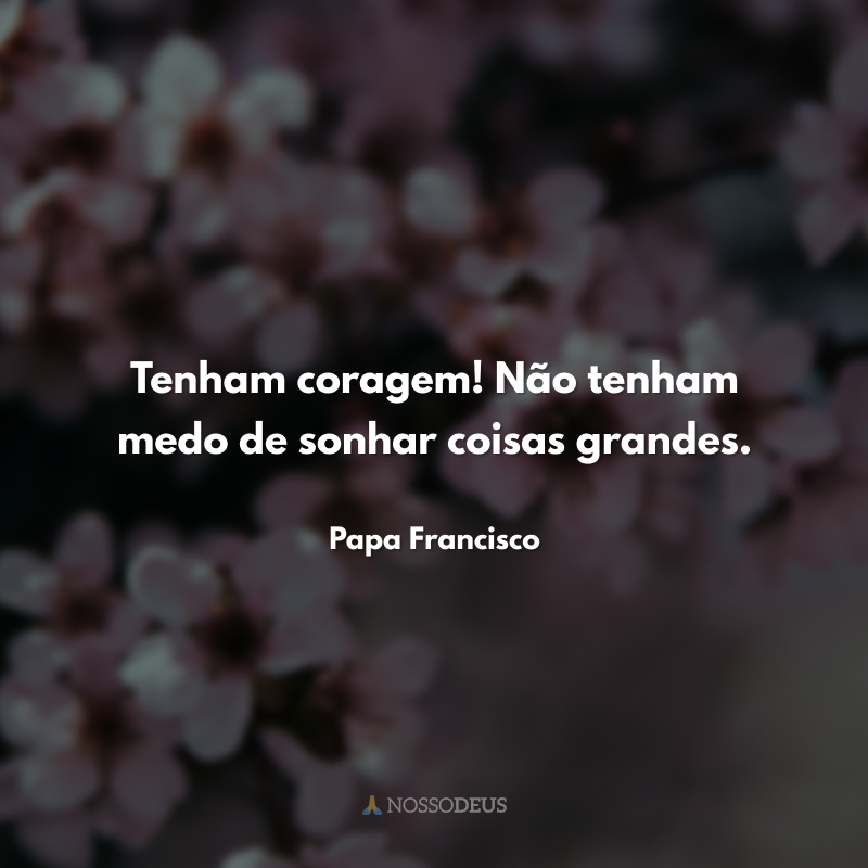 Tenham coragem! Não tenham medo de sonhar coisas grandes.