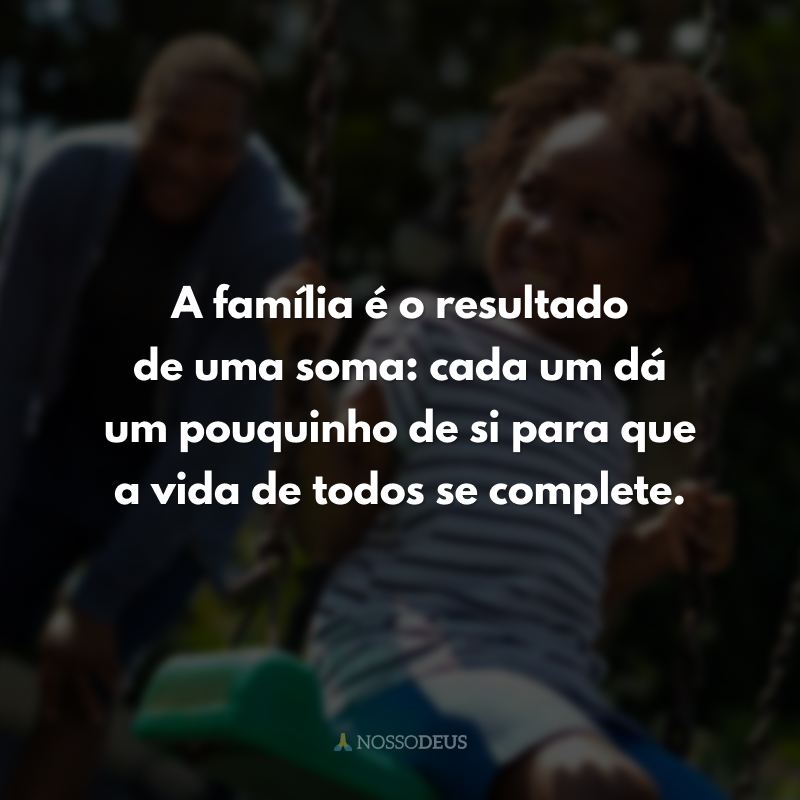 A família é o resultado de uma soma: cada um dá um pouquinho de si para que a vida de todos se complete.