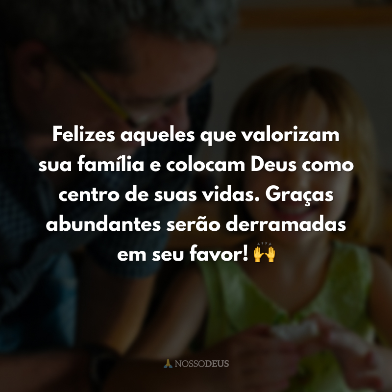 Felizes aqueles que valorizam sua família e colocam Deus como centro de suas vidas. Graças abundantes serão derramadas em seu favor! 🙌
