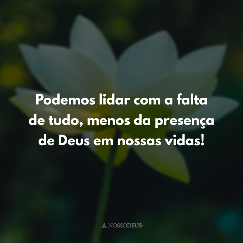 Podemos lidar com a falta de tudo, menos da presença de Deus em nossas vidas!