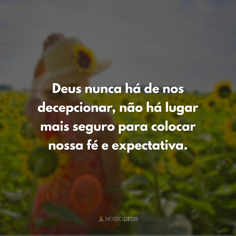 Deus nunca há de nos decepcionar, não há lugar mais seguro para colocar nossa fé e expectativa.