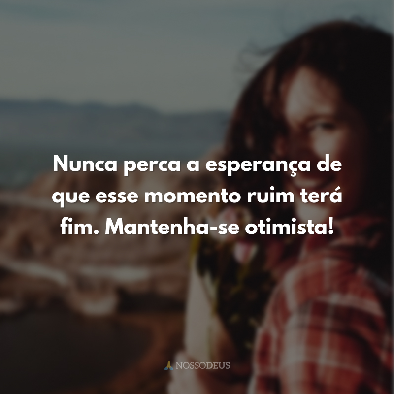 Nunca perca a esperança de que esse momento ruim terá fim. Mantenha-se otimista!