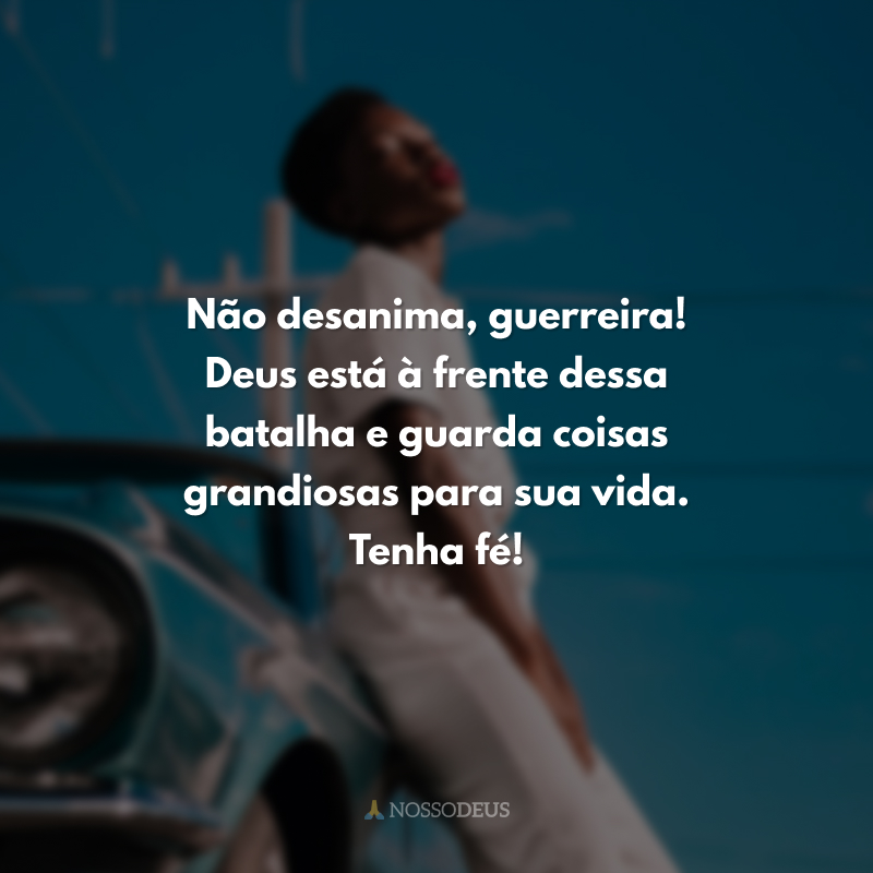 Não desanima, guerreira! Deus está à frente dessa batalha e guarda coisas grandiosas para sua vida. Tenha fé!