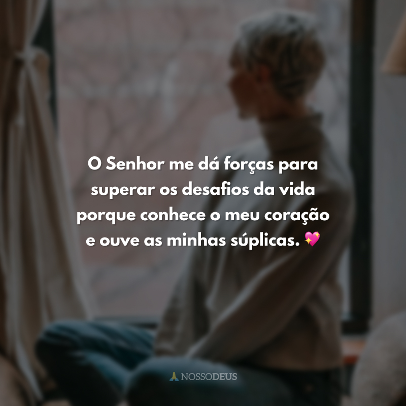 O Senhor me dá forças para superar os desafios da vida porque conhece o meu coração e ouve as minhas súplicas. 💖