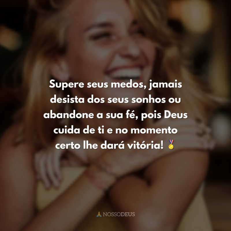 Supere seus medos, jamais desista dos seus sonhos ou abandone a sua fé, pois Deus cuida de ti e no momento certo lhe dará vitória! 🏅