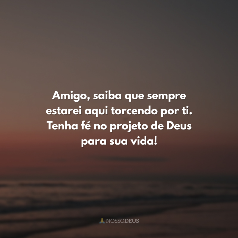 Amigo, saiba que sempre estarei aqui torcendo por ti. Tenha fé no projeto de Deus para sua vida!