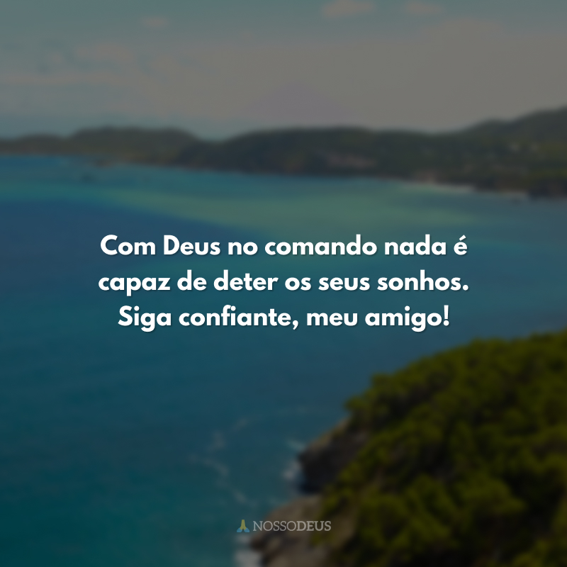 Com Deus no comando nada é capaz de deter os seus sonhos. Siga confiante, meu amigo!