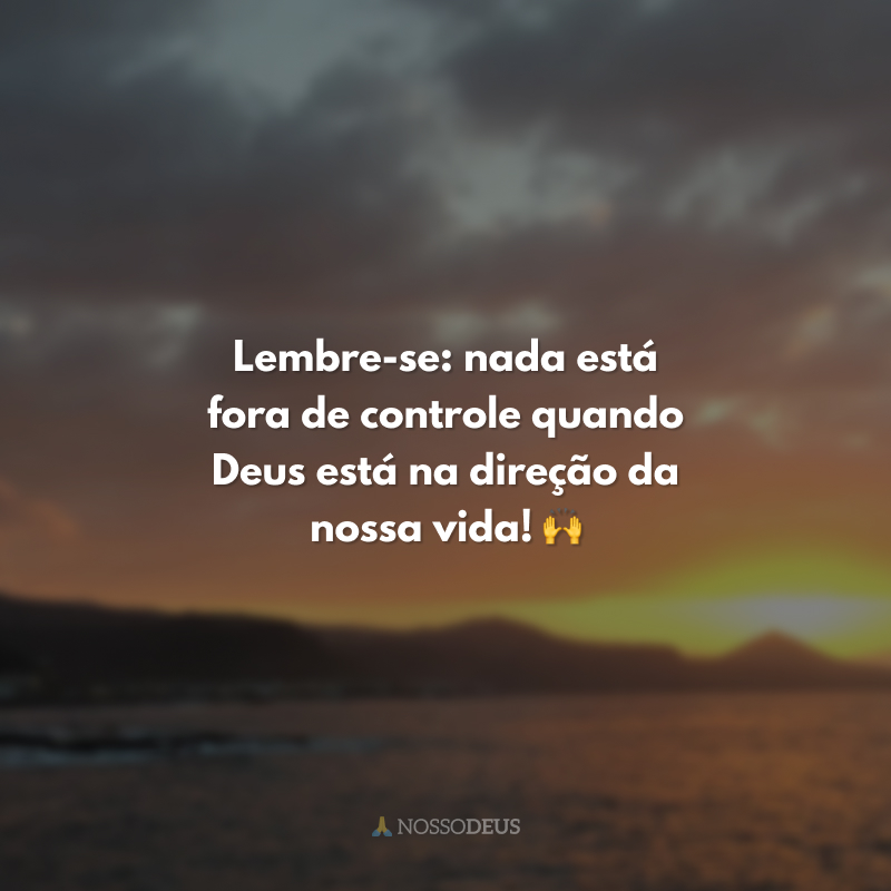 Lembre-se: nada está fora de controle quando Deus está na direção da nossa vida! 🙌