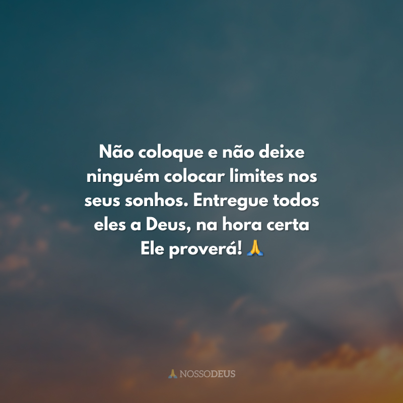 Não coloque e não deixe ninguém colocar limites nos seus sonhos. Entregue todos eles a Deus, na hora certa Ele proverá! 🙏
