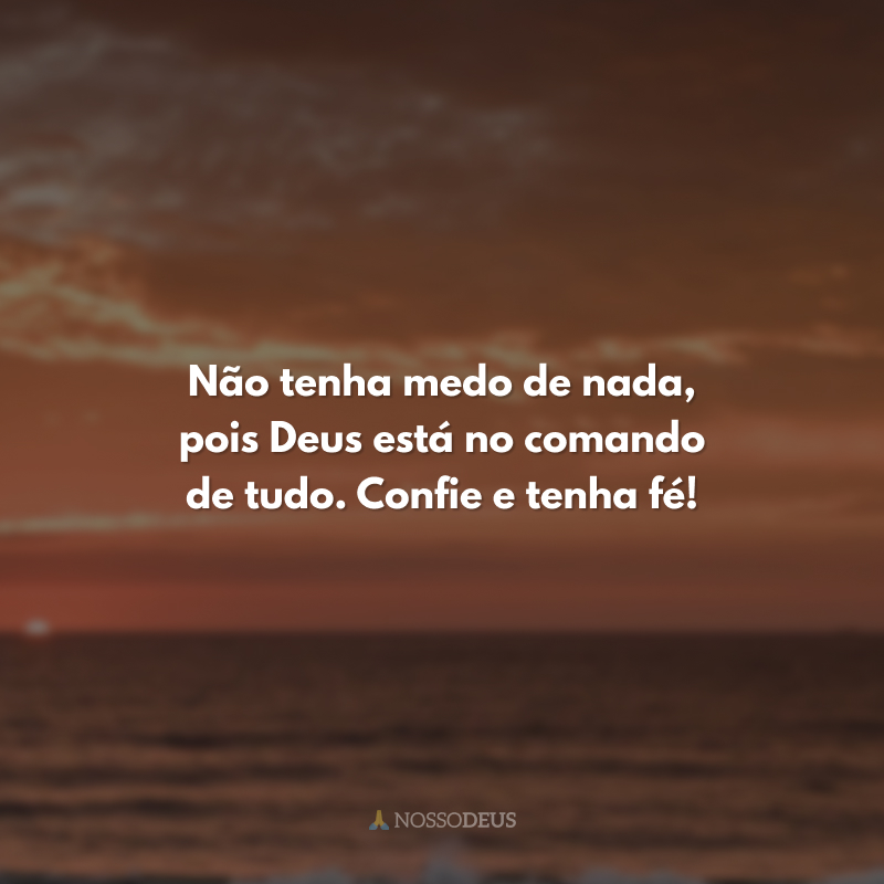 Não tenha medo de nada, pois Deus está no comando de tudo. Confie e tenha fé!