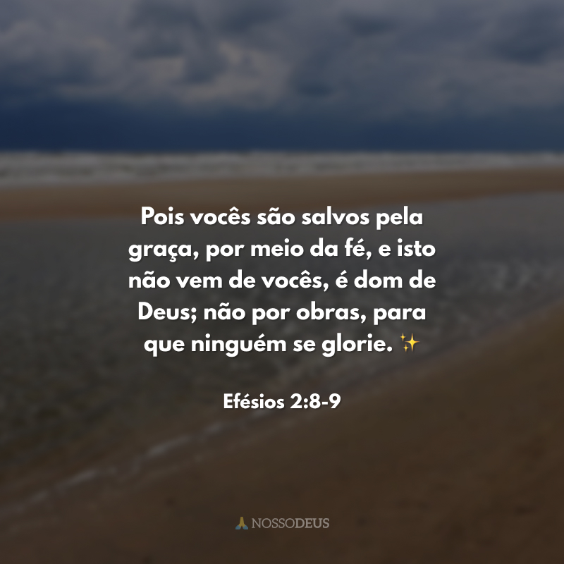 Pois vocês são salvos pela graça, por meio da fé, e isto não vem de vocês, é dom de Deus; não por obras, para que ninguém se glorie. ✨