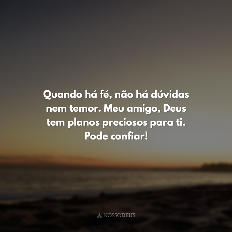Quando há fé, não há dúvidas nem temor. Meu amigo, Deus tem planos preciosos para ti. Pode confiar!
