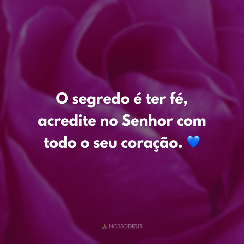O segredo é ter fé, acredite no Senhor com todo o seu coração. 💙