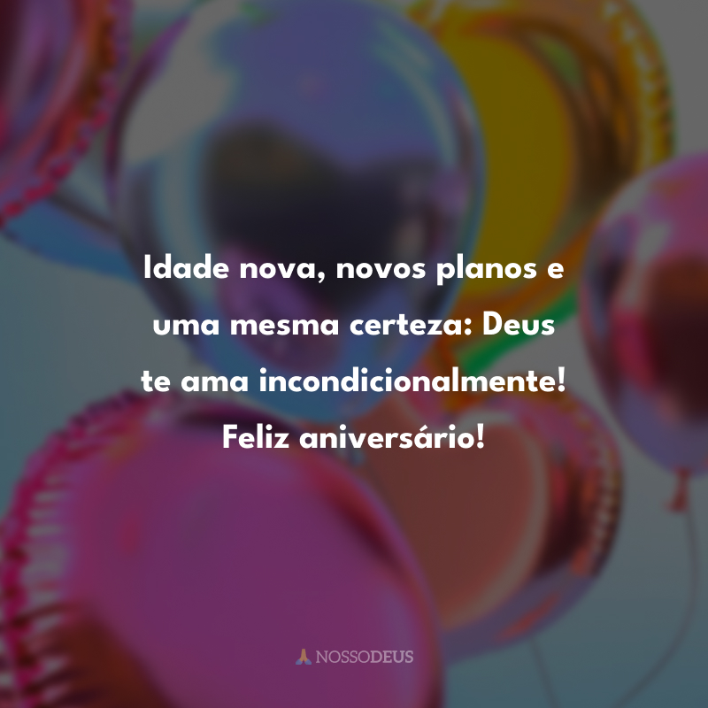 Idade nova, novos planos e uma mesma certeza: Deus te ama incondicionalmente! Feliz aniversário! Que o Senhor lhe abençoe hoje e sempre, escutando permanentemente as suas orações.