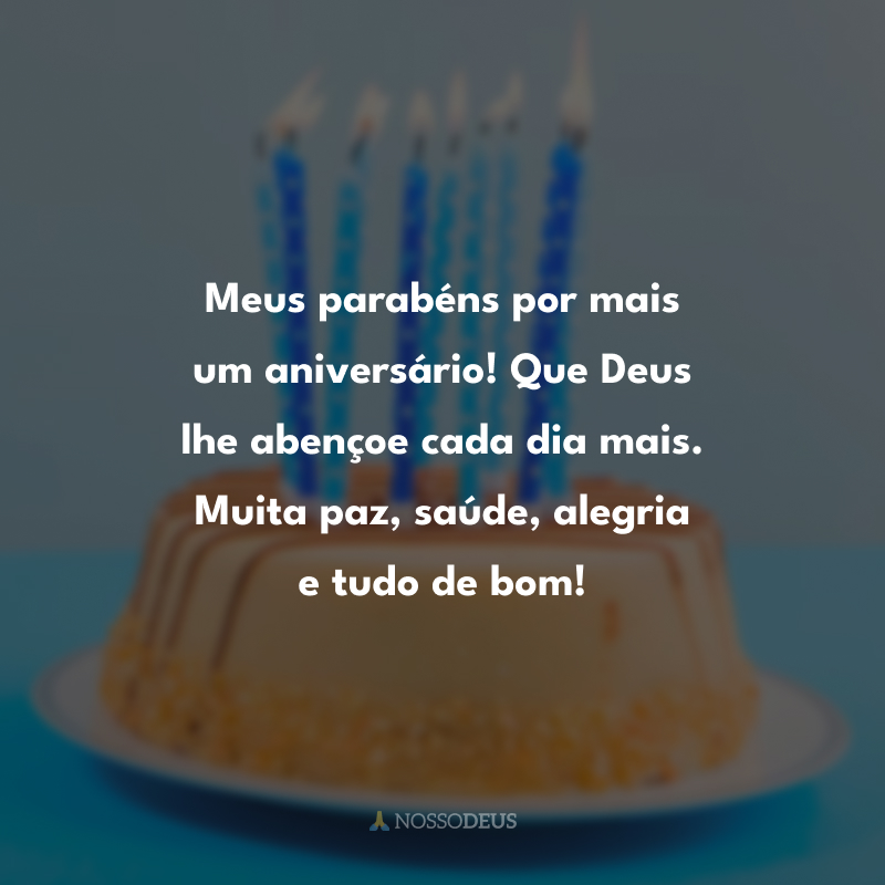 Parabéns! Que Deus possa derramar sobre você infinitas bênçãos e que possa realizar todos seus sonhos. Que essa data se repita por muitos anos na certeza de que Ele te acompanha sempre! 🎂