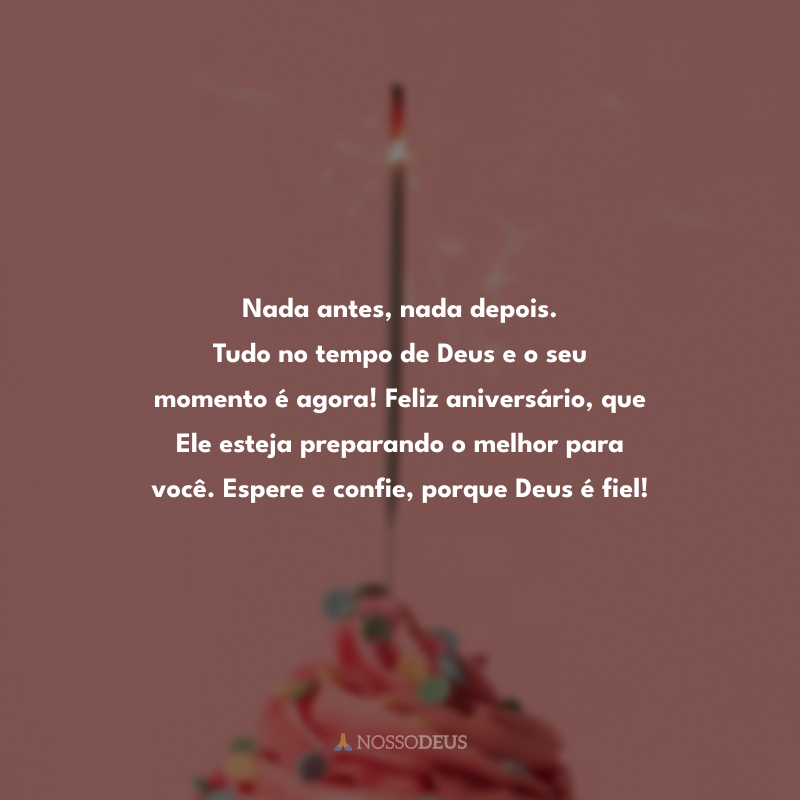 Nada antes, nada depois. Tudo no tempo de Deus e o seu momento é agora! Feliz aniversário, que Ele esteja preparando o melhor para você. Espere e confie, porque Deus é fiel!