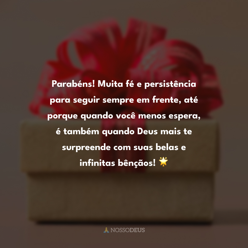 Parabéns! Muita fé e persistência para seguir sempre em frente, até porque quando você menos espera, é também quando Deus mais te surpreende com suas belas e infinitas bênçãos! 🌟