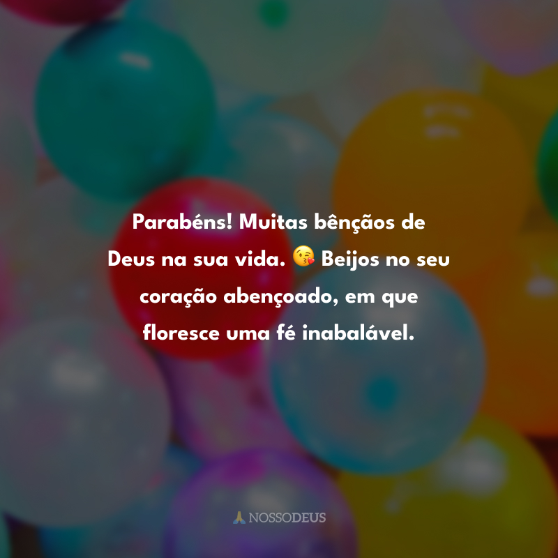 Parabéns! Muitas bênçãos de Deus na sua vida. 😘 Beijos no seu coração abençoado, em que floresce uma fé inabalável. Saiba que Ele faz o melhor por você hoje e sempre!