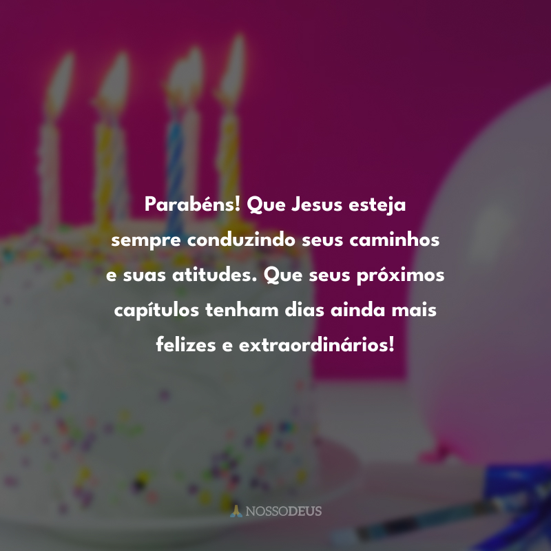 Parabéns! Que Jesus esteja sempre conduzindo seus caminhos e suas atitudes. Que seus próximos capítulos tenham dias ainda mais felizes e extraordinários!
