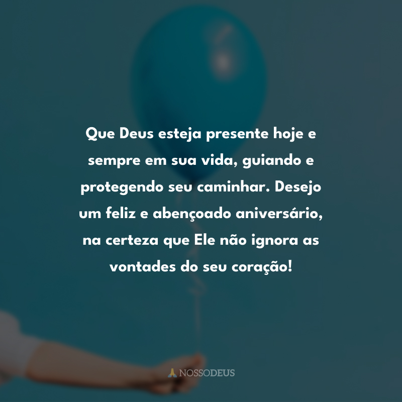 Que Deus esteja presente hoje e sempre em sua vida, guiando e protegendo seu caminhar. Desejo um feliz e abençoado aniversário, na certeza que Ele não ignora as vontades do seu coração!