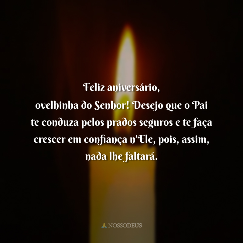 Feliz aniversário, ovelhinha do Senhor! Desejo que o Pai te conduza pelos prados seguros e te faça crescer em confiança n'Ele, pois, assim, nada lhe faltará.