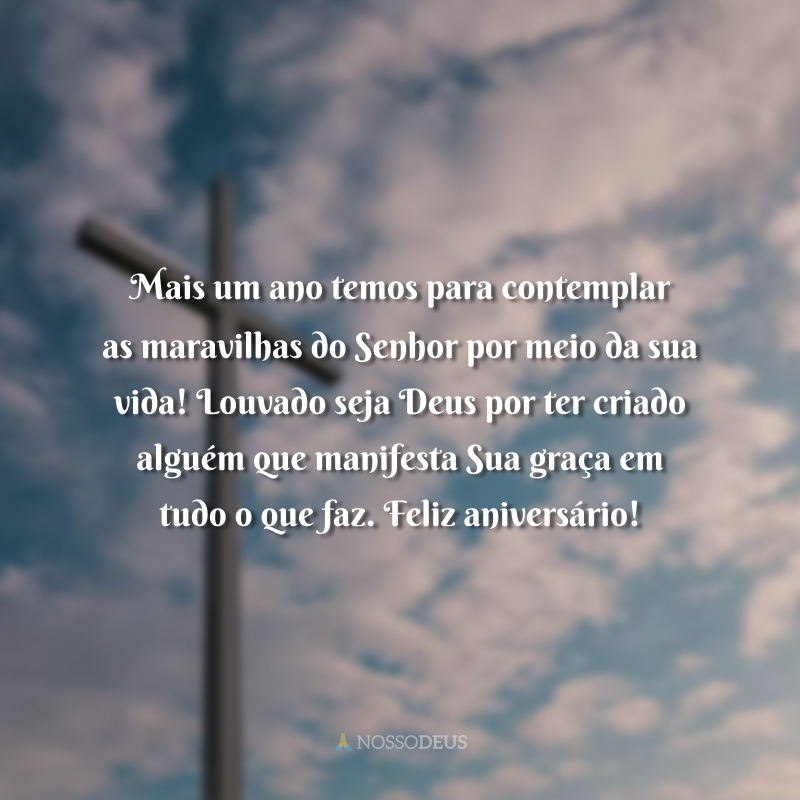 Nesse dia especial, contemplo como Deus é sábio. Ele nos deu o dom da sua vida para nos lembrar que Sua bondade está no meio de nós e não cessa de nos alcançar. Que o Pai te surpreenda e te reserve o melhor nessa nova idade. Feliz aniversário!