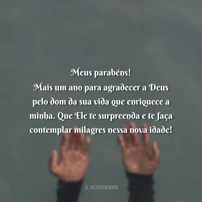 Como são insondáveis os desígnios do Senhor! Não tenho dúvidas que Ele tem algo inédito preparado para você nessa nova idade. Que Deus abençoe os seus sonhos, transforme sua fé nas mais lindas obras e te faça cada vez mais em imagem e semelhança de Jesus. Felicidades!