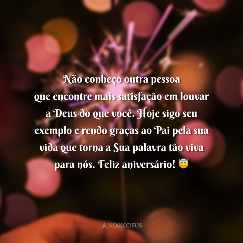 Não conheço outra pessoa que encontre mais satisfação em louvar a Deus do que você. Hoje sigo seu exemplo e rendo graças ao Pai pela sua vida que torna a Sua palavra tão viva para nós. Feliz aniversário!😇