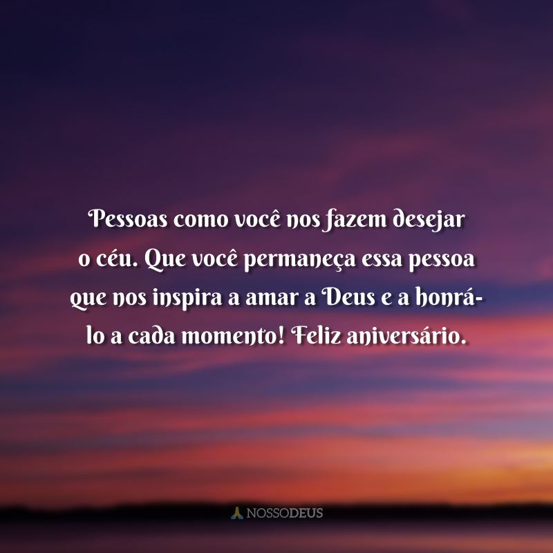 Pessoas como você nos fazem desejar o céu. Que você permaneça essa pessoa que nos inspira a amar a Deus e a honrá-lo a cada momento! Feliz aniversário.