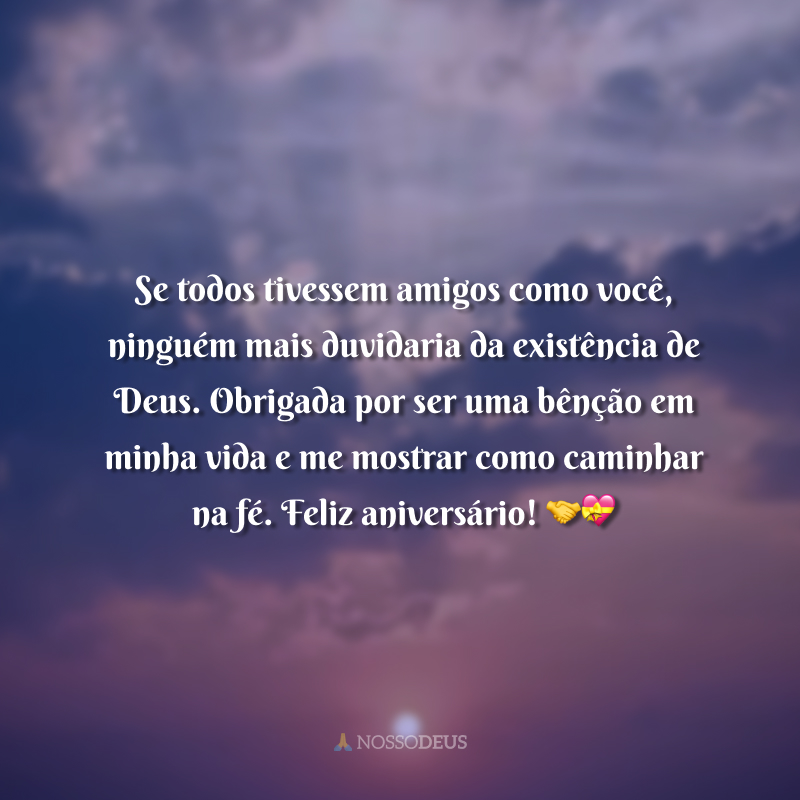 Se todos tivessem amigos como você, ninguém mais duvidaria da existência de Deus. Obrigada por ser uma bênção em minha vida e me mostrar como caminhar na fé. Feliz aniversário! 🤝💝