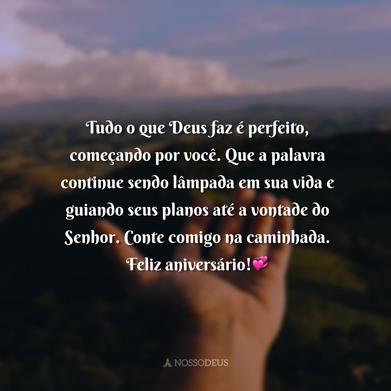 Tudo o que Deus faz é perfeito, começando por você. Que a palavra continue sendo lâmpada em sua vida e guiando seus planos até a vontade do Senhor. Conte comigo na caminhada. Feliz aniversário!💞