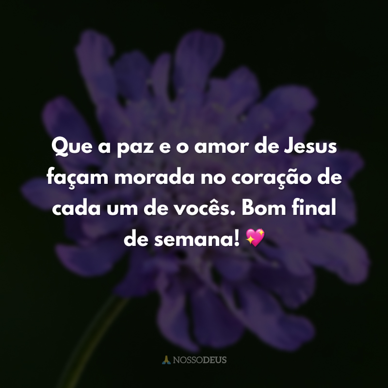 Que a paz e o amor de Jesus façam morada no coração de cada um de vocês. Bom final de semana! 💖
