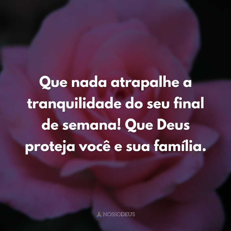 Que nada atrapalhe a tranquilidade do seu final de semana! Que Deus proteja você e sua família.