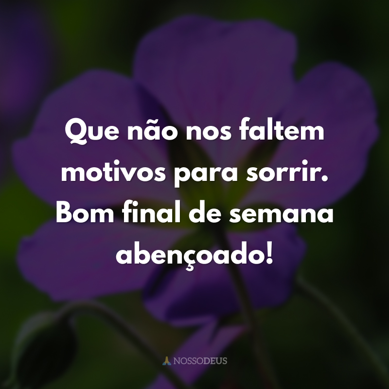 Que não nos faltem motivos para sorrir. Bom final de semana abençoado!