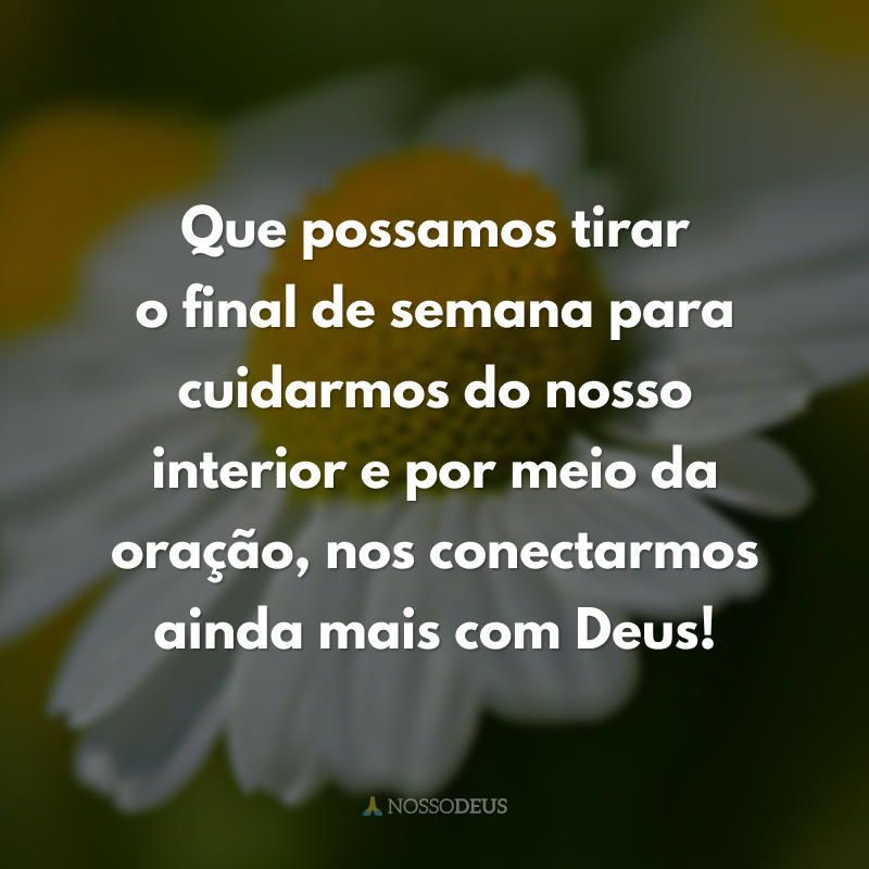 Que possamos tirar o final de semana para cuidarmos do nosso interior e por meio da oração, nos conectarmos ainda mais com Deus!
