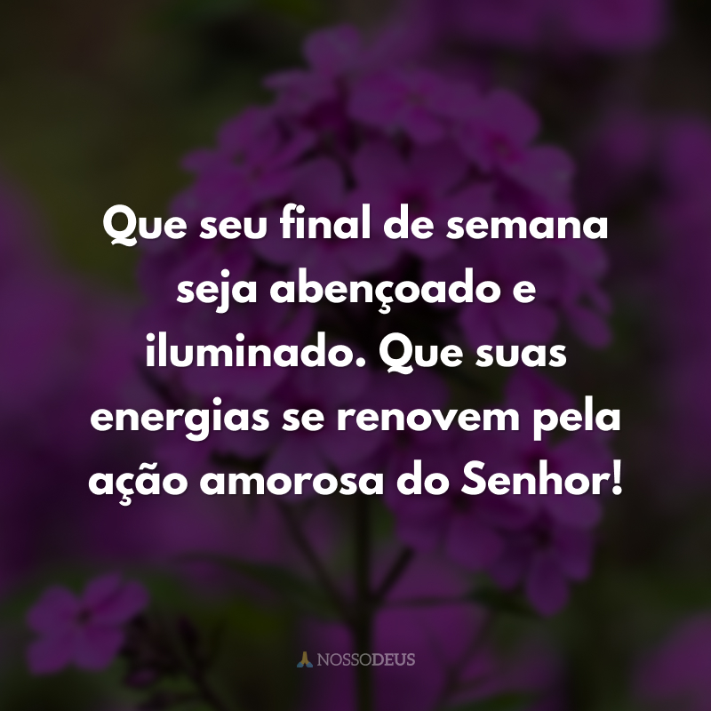 Que seu final de semana seja abençoado e iluminado. Que suas energias se renovem pela ação amorosa do Senhor!