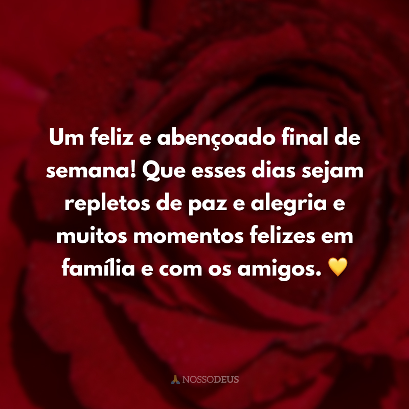 Um feliz e abençoado final de semana! Que esses dias sejam repletos de paz e alegria e muitos momentos felizes em família e com os amigos. 💛