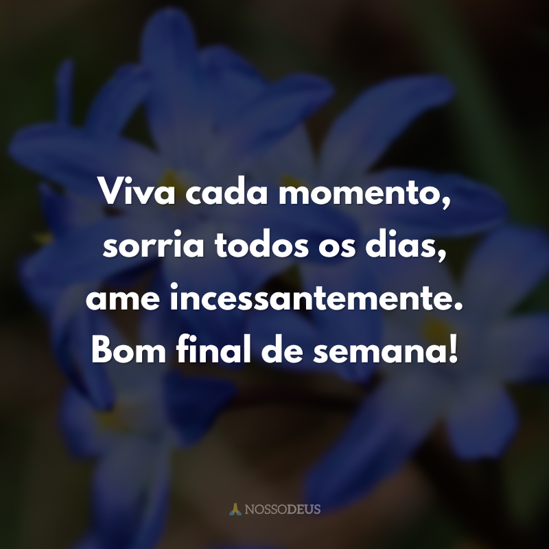 Bom final de semana! Que seu sábado seja cheio de amor, seu domingo cheio de paz e sua vida cheia de esperança e alegria.