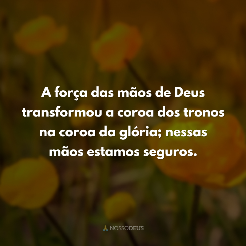 A força das mãos de Deus transformou a coroa dos tronos na coroa da glória; nessas mãos estamos seguros.