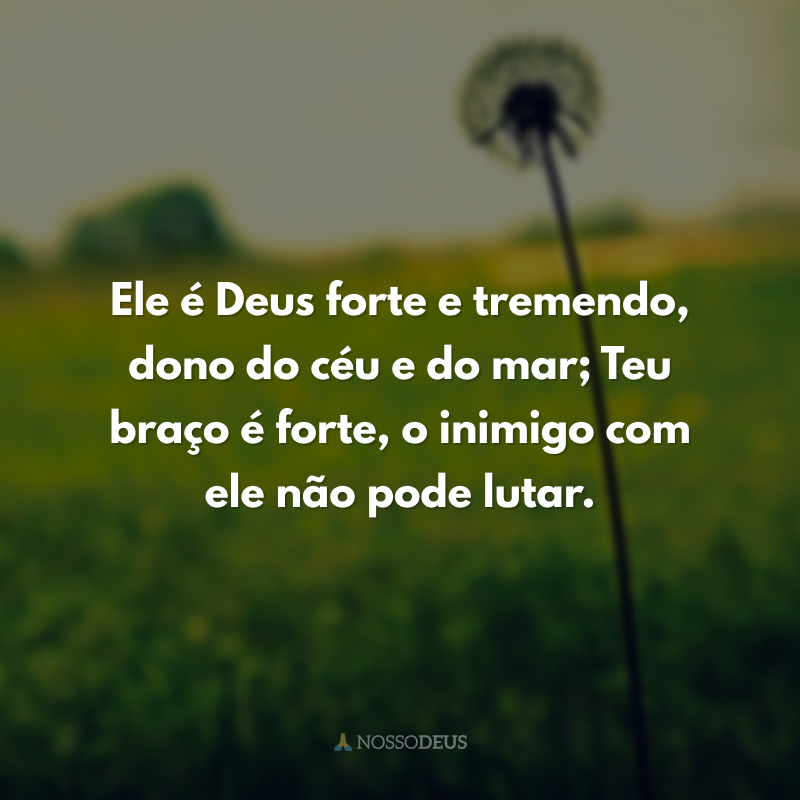 Ele é Deus forte e tremendo, dono do céu e do mar; Teu braço é forte, o inimigo com ele não pode lutar.