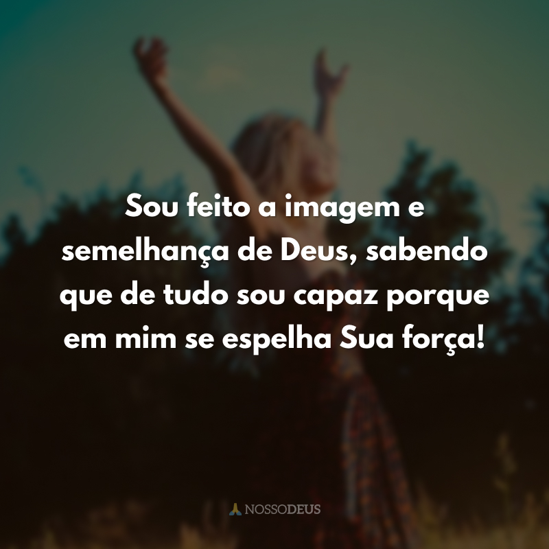 Sou feito a imagem e semelhança de Deus, sabendo que de tudo sou capaz porque em mim se espelha Sua força!