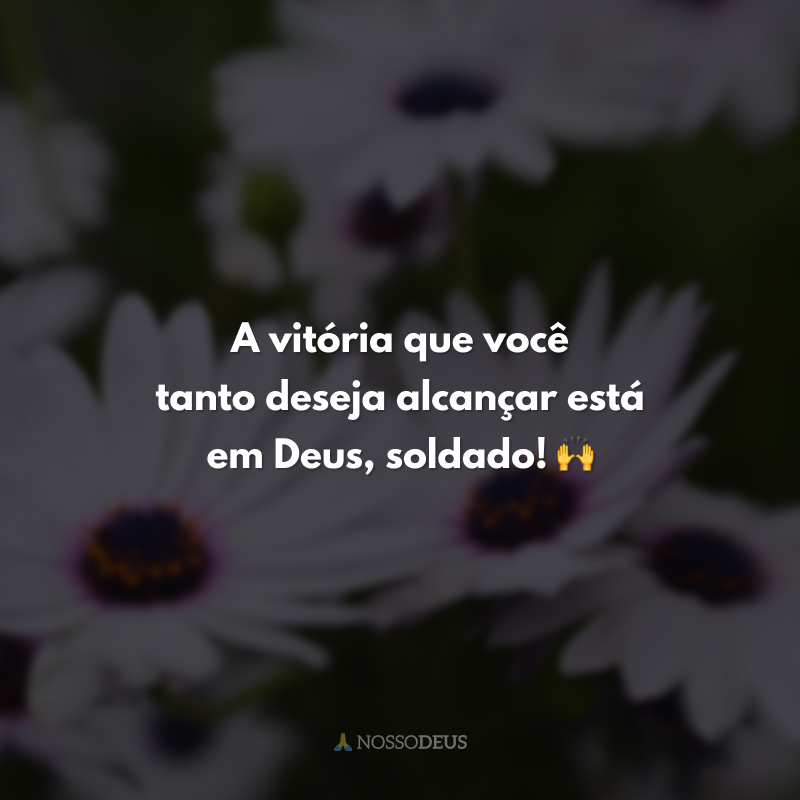 A vitória que você tanto deseja alcançar está em Deus, soldado! 🙌
