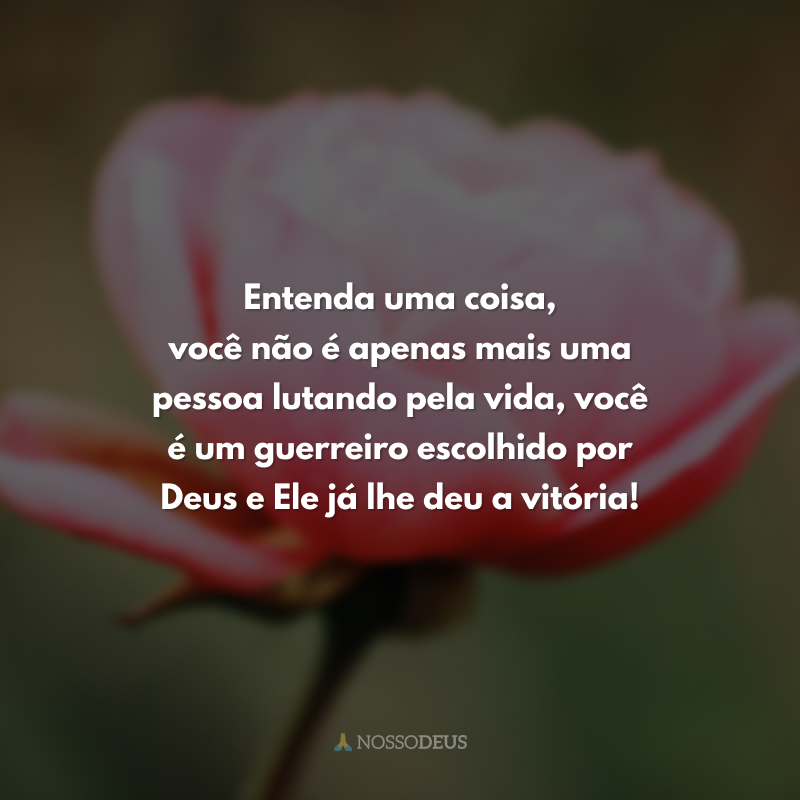 Entenda uma coisa, você não é apenas mais uma pessoa lutando pela vida, você é um guerreiro escolhido por Deus e Ele já lhe deu a vitória!
