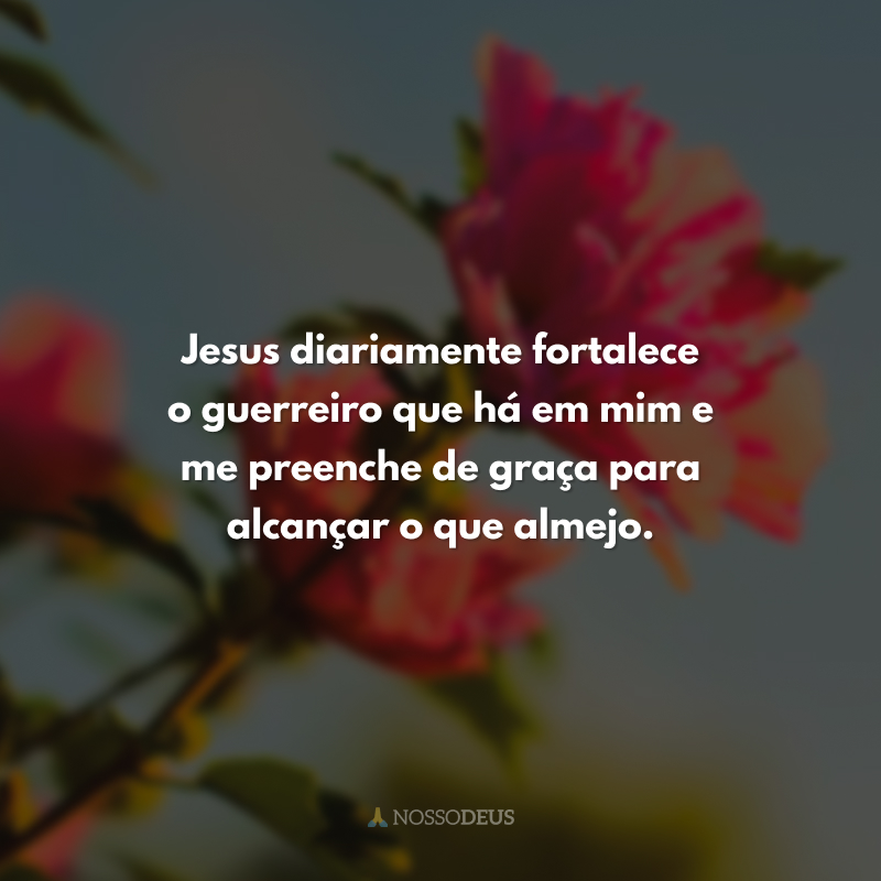 Jesus diariamente fortalece o guerreiro que há em mim e me preenche de graça para alcançar o que almejo.